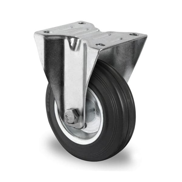 Bockrolle von Cascoo mit Lauffläche aus Vollgummi schwarz und Felge aus Stahlblech