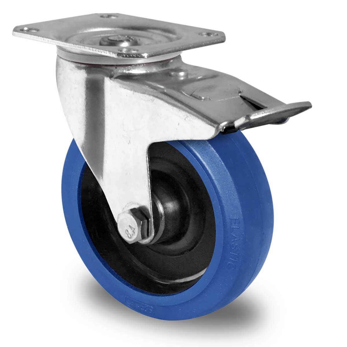 Lenkrolle mit Bremse von Cascoo mit Lauffläche aus Gummi blau und Felge aus Polyamid