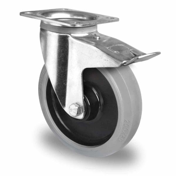 Cascoo Lenkrolle mit Bremse Gummi grau | 200 mm – 350 kg | Doppel-Kugellager