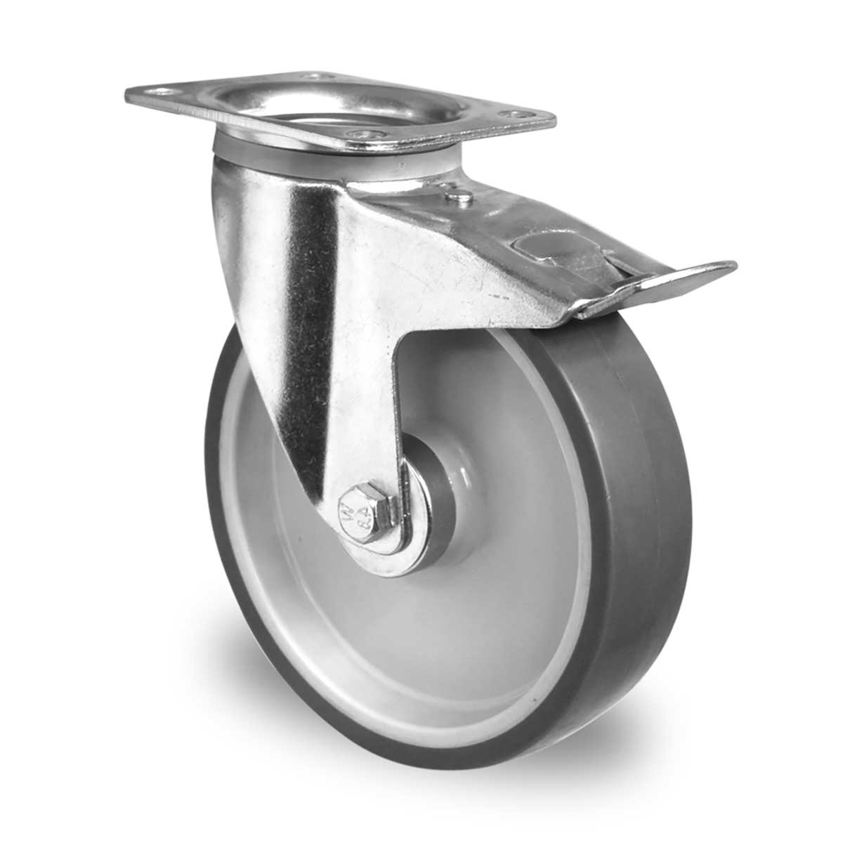 Lenkrolle mit Bremse von Cascoo mit Lauffläche aus TPE und Felge aus Polypropylen