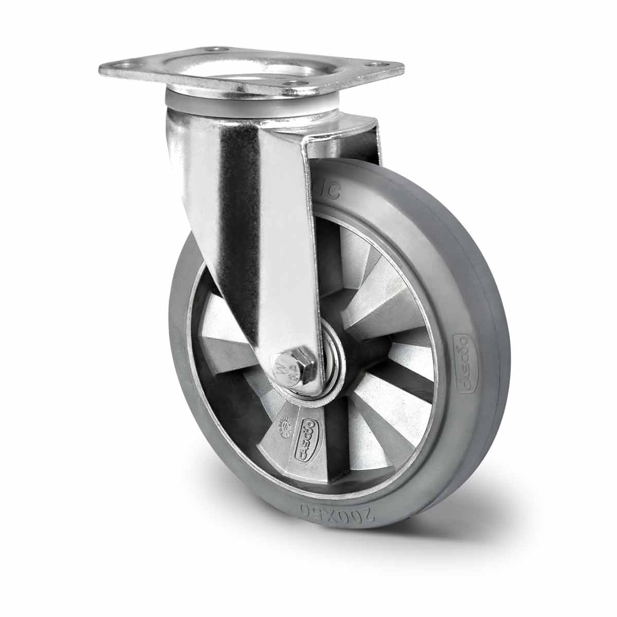 Lenkrolle Schwerlast von Cascoo mit Lauffläche aus Gummi grau und Felge aus Aluminium