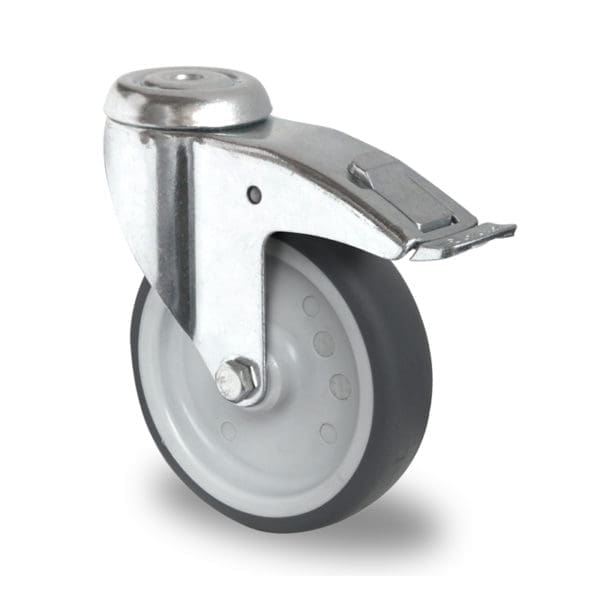 Rückenlochlenkrolle mit Bremse von Cascoo mit Lauffläche aus TPE und Felge aus Polypropylen
