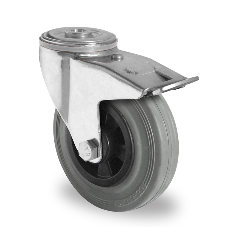 Cascoo Rückenlochlenkrolle mit Bremse Vollgummi grau | 125 mm – 100 kg | Rollenlager